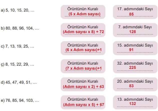 Aşağıdaki her bir sayı örüntüsünün kuralını belirleyerek istenen adımındaki sayıyı bulunuz.