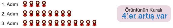 2) Rozetlerle oluşturulan bu şekil örüntüsünün 4 ve 58. adımda kaç tane rozet olması gerektiğini bulunuz.