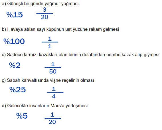 2) Aşağıdaki olayların olasılıklarını tahmin edip kesir olarak ifade ediniz.