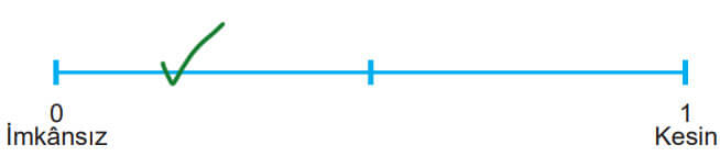 2) Sarı topun çekilme olasılığına yönelik tahmininizi olasılık spektrumunda işaretleyiniz.
