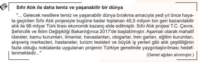 Cevap: Ünitenin başında öğrendiğim sözü söylerdim. “Biz dünyayı atalarımızdan miras almadık, çocuklarımızdan ödünç aldık”