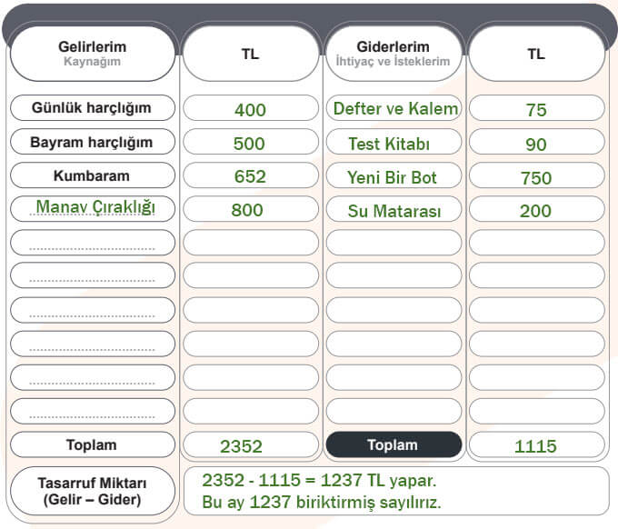 5.Sınıf MEB Yayınları Sosyal Bilgiler Ders Kitabı 93-94-95-96-97-98-99. Sayfa Cevapları 2. KİTAP Bütçemi Planlıyorum