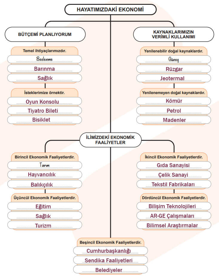 4. Aşağıda arıcılık ve arı ürünleriyle ilgili ekonomik faaliyetlerdeki örnekler verilmiştir. Örneklerde verilen ekonomik faaliyetlerdeki bilgileri dikkate alıp hangi ekonomik faaliyet alanı ile ilişkili olduğunu ilgili alanlara yazınız.