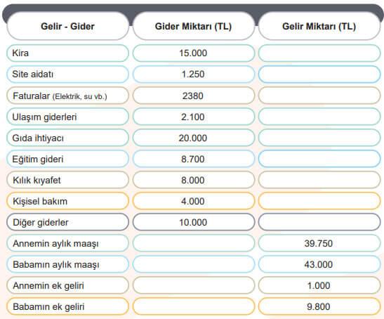 Begüm ve ailesinin aylık bütçeleri ile en yüksek mutluluk puanına ulaşacakları bir tatil planı hazırlayıp aşağıdaki tabloya yazınız.