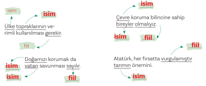 a. Aşağıdaki cümlelerde altı çizili kelimelerin isim mi fiil mi olduğunu tespit ederek örnekteki gibi yazınız.