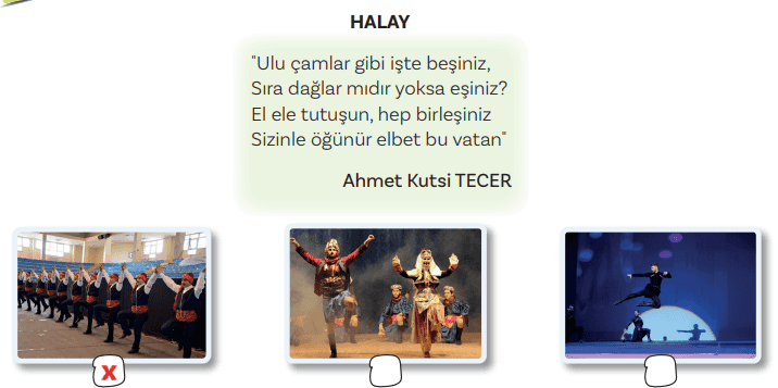 Cevap: Şair ülkemizin katığından, kavalından, türkülerinden, destanlarından, davulundan, zeybeklerinden, sazından, genel bakışla yemeğinden, oyunlarından söz etmiştir.