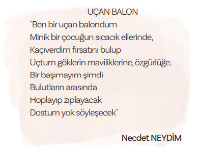 Aşağıdaki soruları okuduğunuz şiirden hareketle sözlü olarak cevaplayınız.