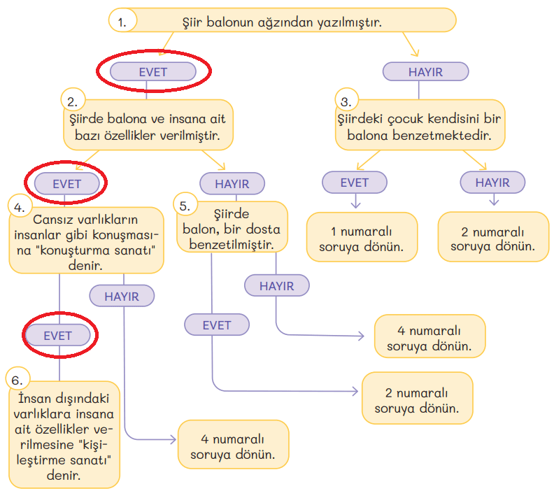 Şiir üzerinde yapılmış renklendirme ile ilgili aşağıdaki cümleleri tamamlayınız.