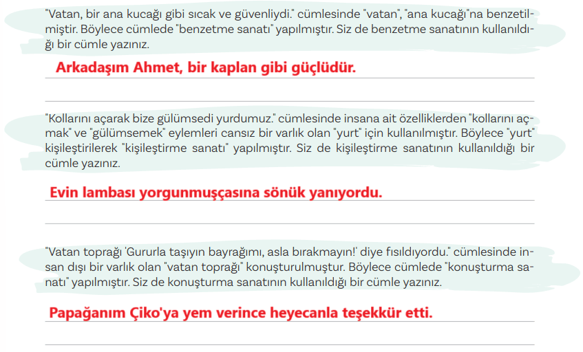 Cevap: Belirlediğimiz özellikler şiirin anlatımını güçlendirir ve bir duyguyu anlatır.