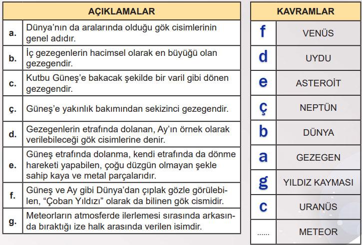 6.Sınıf MEB Yayınları Fen Bilimleri Ders Kitabı 19-22-23-24-25-26-27-28. Sayfa Cevapları 1. KİTAP Güneş Sistemi