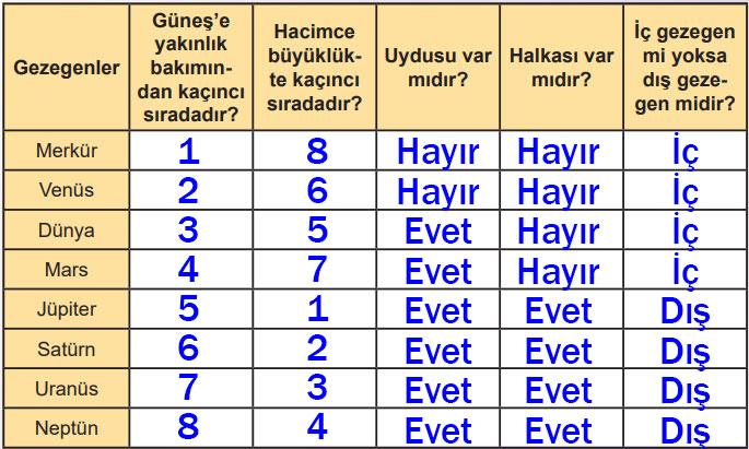 Detaylı bilgi için bu bağlantıdaki konuyu okuyabilirsiniz: (Tıklanabilir Bağlantı) Güneş Sistemindeki Gezegenleri Özeliklerine Göre Kaç Farklı Gruba Ayırabiliriz?