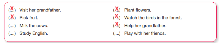 8. What did Julia do on holiday? Read the dialogue again and tick.