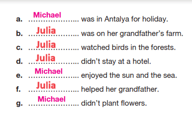 9. Think about Julia and Michael’s holidays. Write their names to make sentences.