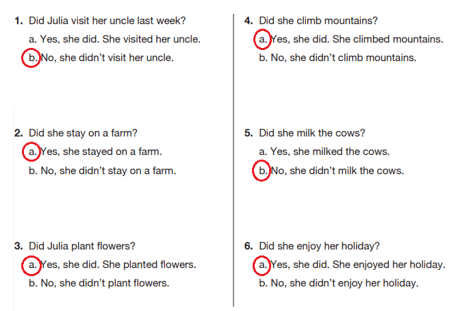 Çeviri: Julia tatilde ne yaptı? Diyaloğu tekrar okuyun ve işaretleyin.