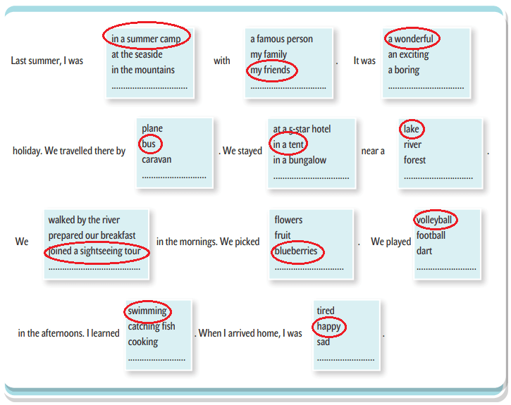 16. Fill in the blanks in the boxes in activity 14. Make up and write down your own story.