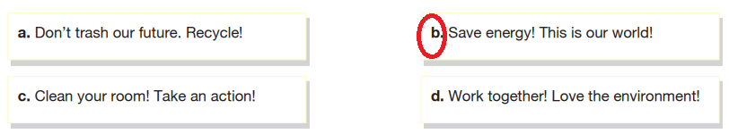 Çeviri: Postere bakın ve aşağıdaki sloganları okuyun. Poster için en iyi sloganı seçin.