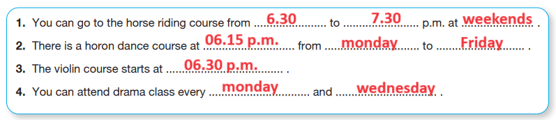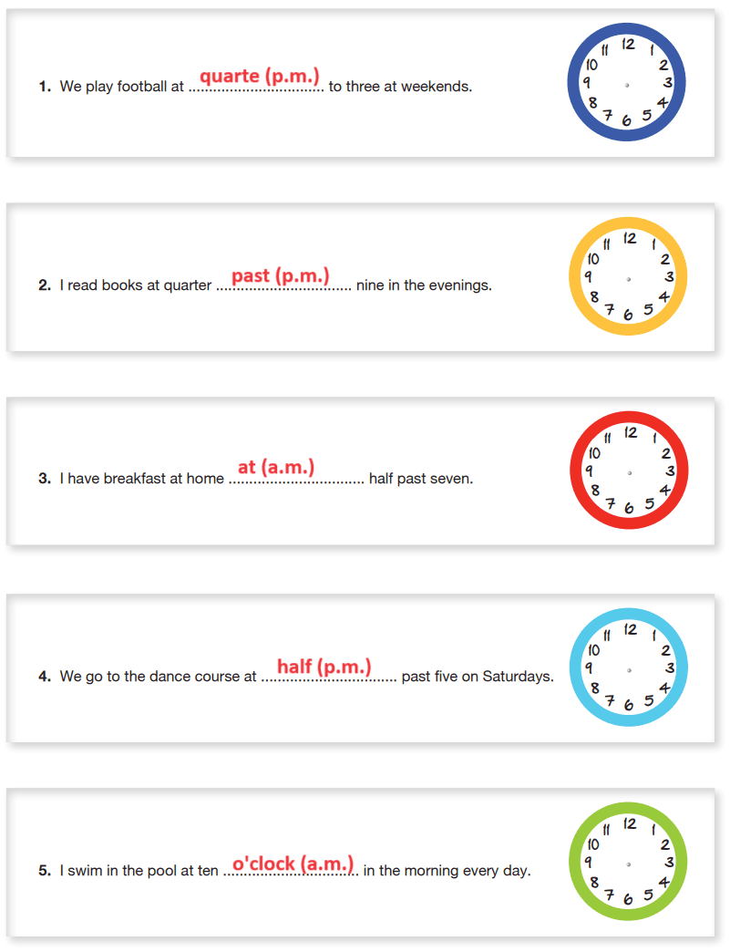 1. Tom gets back home around 2.45 p.m. Here are his afternoon activities: