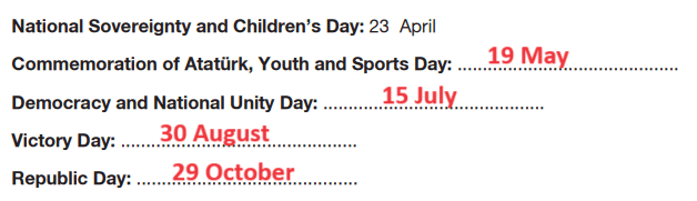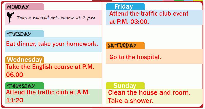 Read Murat’s notes about his after-school activities and answer the questions 7 and 8. (Murat’ın okul sonrası aktiviteleriyle alakalı notları okuyun ve 7. ve 8. soruyu cevaplayın.)