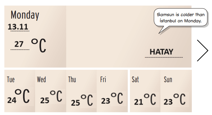 Çeviri: Haritaya bakın ve Türkiye’deki bazı şehirlerin hava durumu raporlarını yazın.