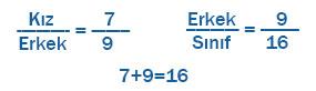 4-) Bir sınıftaki kız öğrenci sayısının erkek öğrenci sayısına oranı 7/9’dur. Bu sınıftaki erkek öğrenci sayısının sınıf mevcuduna oranını bulunuz.