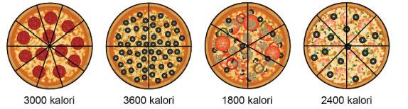 Ercan, Elif, Gürbüz ve Yusuf kendi pizzasından 900 kaloriye karşılık gelecek şekilde dilimler yiyor. Sonra her biri pizzadan yedikleri dilim sayısının yemedikleri dilim sayısına oranını hesaplıyor.