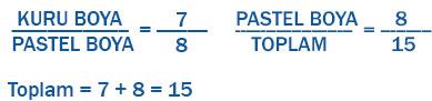 5-) Bir kalemlikteki kuru boyaların sayısının pastel boyaların sayısına oranı 7/8’dir.