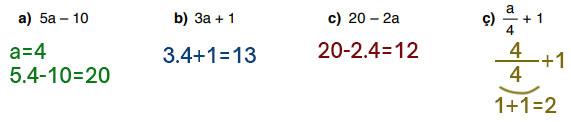 5) Aşağıdaki cebirsel ifadelerin değerlerini değişkenin olacağı 4 değeri için hesaplayınız.