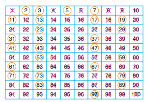 1’den 100’e kadar doğal sayıların yazılı olduğu bir kart yukarıda verilmiştir.