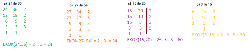Cevap: Ortak çarpanlarını bulmamız gerekmektedir. Burada yalnızca 1 rakamı ortaktır.