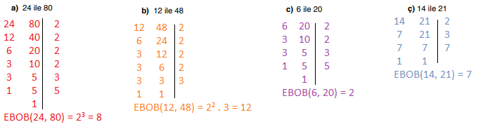 c) __D__ Sıfırdan farklı iki doğal sayının ortak bölenlerinin en küçüğü her zaman 1’dir.