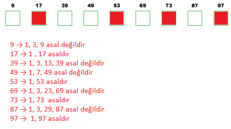 3) Hem sarıya hem de kırmızıya boyanan karelerdeki doğal sayıları yazınız.