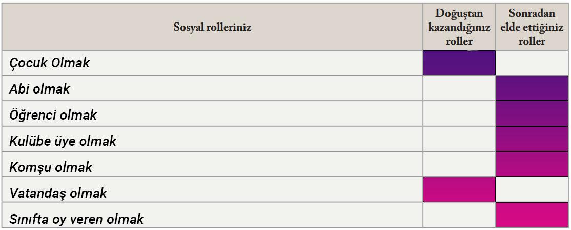 Yaşamınızın bugüne kadarki bölümünde, verilen bu rollerden hangilerini üstlendiniz? Söyleyiniz.