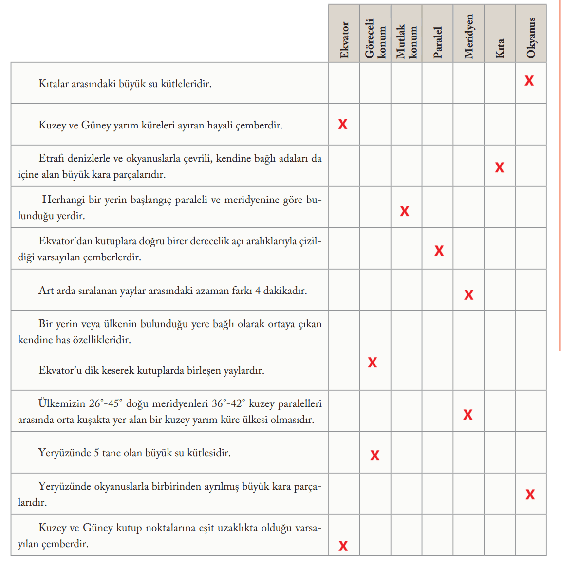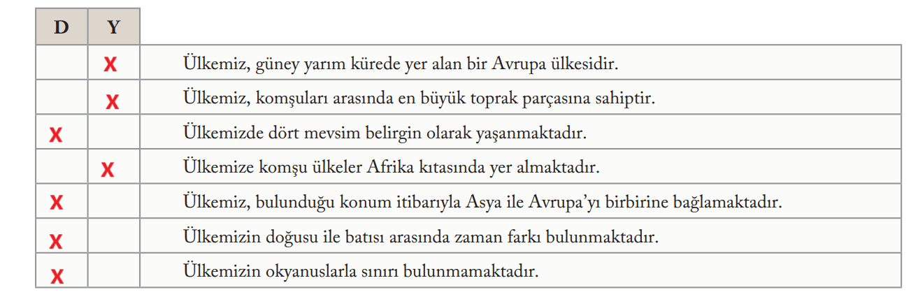 Kutulardaki bilgi doğru ise “✔” yanlış ise “X” ile işaretleyiniz.