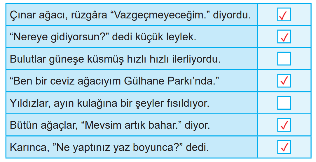 ç. İşaretlemelerinizi gözden geçirerek aşağıdaki ifadeleri uygun şekilde tamamlayınız.