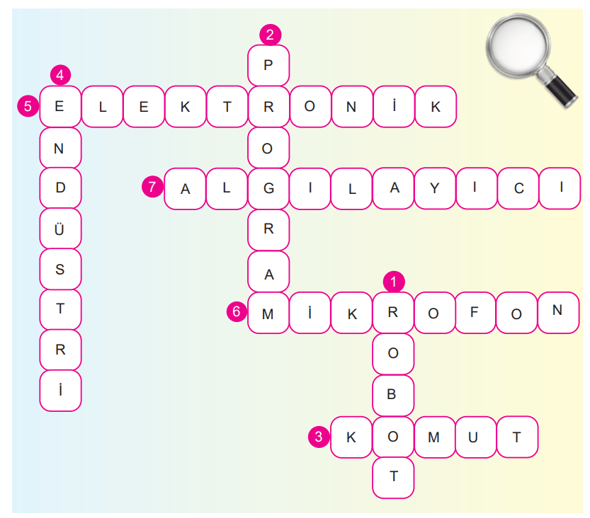 c. Etkinliğin “b” maddesindeki tablodan hareketle aşağıda yay ayraç içinde verilen değerlerin harf karşılıklarını bulunuz. Oluşan kelimeleri ilgili yerlere yazarak yanlarındaki işlev ifadelerini tamamlayınız.