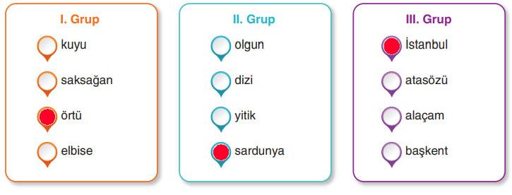 c. 3 puan verdiğiniz kelime/kelime gruplarına yönelik tahminlerinizi defterinize yazınız ve tahminlerinizin doğruluğunu TDK Güncel Türkçe Sözlük’ten kontrol ediniz. 1 ve 2 puan verdiğiniz kelime/kelime gruplarının anlamlarını yine sözlükten bularak defterinize yazınız. 4 puan verdiğiniz kelime/kelime gruplarını ise defterinizde birer cümlede kullanınız.