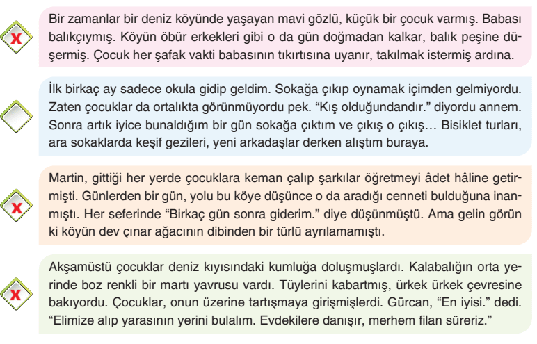 Öğretmeninizin rehberliğinde aşağıdaki başlangıç cümlelerinden birini seçiniz. Sınıf oturma düzeninize uygun şekilde sırayla söz alınız. Seçtiğiniz başlangıç cümlesine ya da bir önceki arkadaşınızın cümlesine örnekteki gibi uygun geçiş ve bağlantı ifadeleri kullanarak cümlenizi ekleyiniz. Yeni bir cümle ekleyemediğinizde farklı bir başlangıç cümlesine geçiniz.
