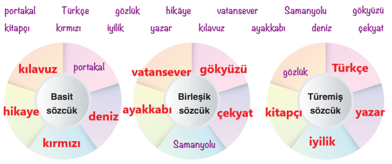 b. Ulaştığınız kelimeleri beşinci sınıfta öğrendiklerinizi de göz önünde bulundurarak bir kavramın adı olma/bir işi anlatma durumuna göre aşağıda sınıflayınız.