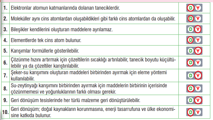 Aşağıdaki ifadeler doğru ise “D” harfli kutucuğu, yanlış ise “Y” harfli kutucuğu işaretleyiniz.