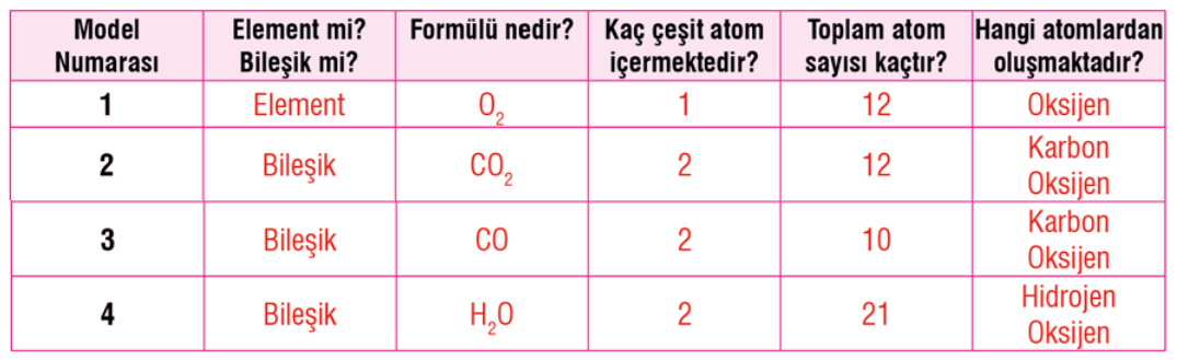 2. Aşağıda bazı atomlar, renkli daireler ile temsil edilerek çeşitli modeller oluşturulmuştur.