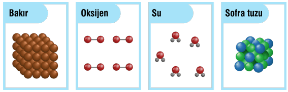 3. Günlük hayatta kullanılan bazı maddelerin tanecikli yapısı aşağıdaki gibidir: