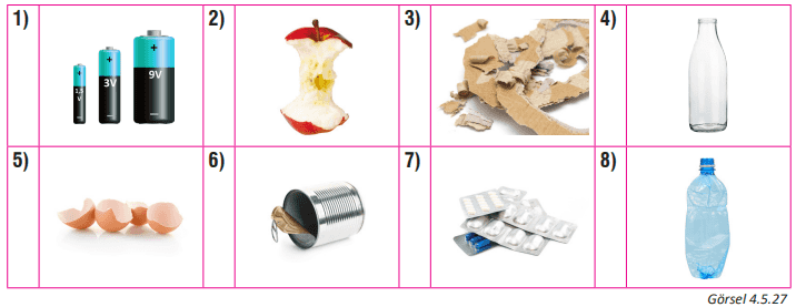 7. Aşağıdaki tabloda bazı atıklar numaralandırılmıştır.