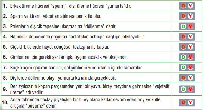 10. Tüm canlıların büyüme, gelişme, üreme ve yaşamını yitirmesini içine alan sürece __hayat döngüsü__ denir.