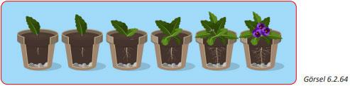 3. Bir öğrenci, fen bilimleri dersi kapsamında bir bitkinin büyüme ve gelişme basamaklarını incelemek istemiştir. Bunun için menekşe bitkisinden aldığı yapraklı bir dalı, bir süre suda bekletip dalın köklenmesini sağlamıştır. Köklenmiş yaprağı ana bitkiyle aynı koşulları taşıyan bir ortamda saksıya dikerek yaprağın gelişimini gözlemlemiş ve rapor etmiştir.