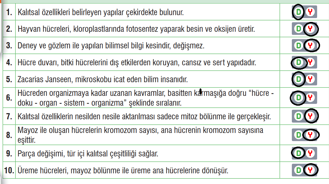 Aşağıdaki ifadeler doğru ise “D” harfli kutucuğu, yanlış ise “Y” harfli kutucuğu işaretleyiniz.