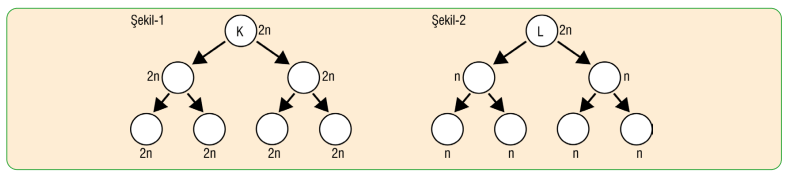 1. Aşağıda K ve L hücrelerine ait hücre bölünmeleri verilmiştir.