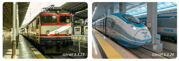 2. Aşağıda farklı yıllarda üretilmiş trenlere ait görseller verilmiştir. Gelişen teknoloji ile birlikte trenlerin görünümlerinde de birtakım değişiklikler meydana gelmiştir.
