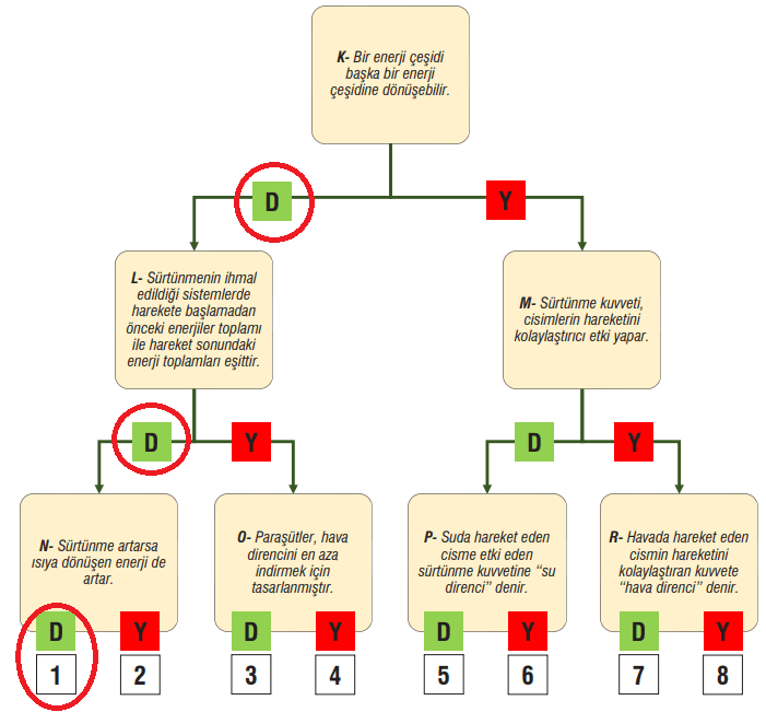 3. Aşağıda yer alan kutulardaki ifade doğru ise “D”, yanlış ise “Y” yönünde ilerlenerek çıkışlardan birine ulaşılacaktır.