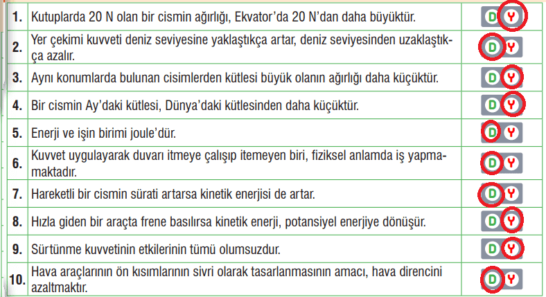 10. Sürtünme kuvveti, cisimlerin sahip olduğu ….kinetik…. enerjilerinin azalmasına neden olur.