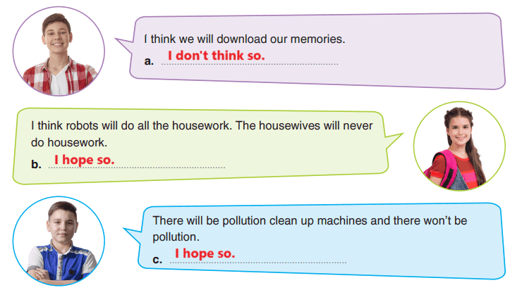 Çeviri: Fotoğraflara bakın ve tercihlerinizle ilgili cümleler yazın.